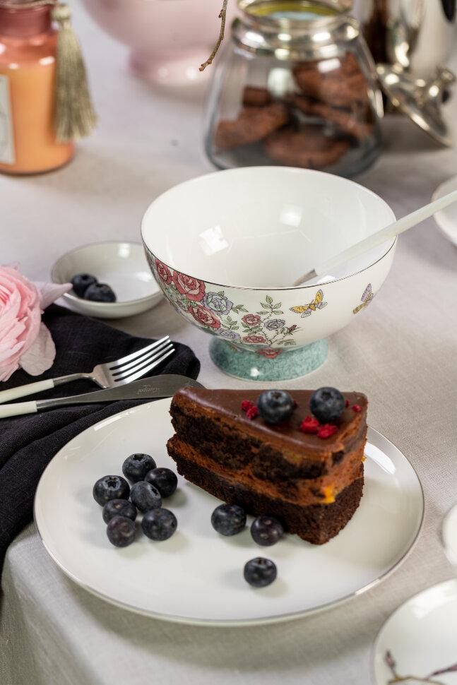 Это белая плоская тарелка диаметром 20 см из фарфора. Такая сервировочная посуда идеально подойдет для подачи различных блюд – от обеденных до десертных. Уникальный дизайн этого предмета делает его настоящим украшением стола. Благородный китайский фарфор, из которого изготовлена тарелка, придаст роскошь вашему приему. Благодаря своей гладкой поверхности, тарелка легко моется и не впитывает запахи, что делает ее гигиеничной и удобной в использовании.